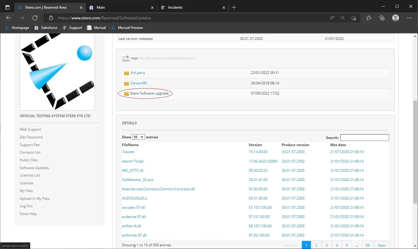 1. Login to your reserved area and under Public files section download the file Etereinstall.exe (Etere Install)