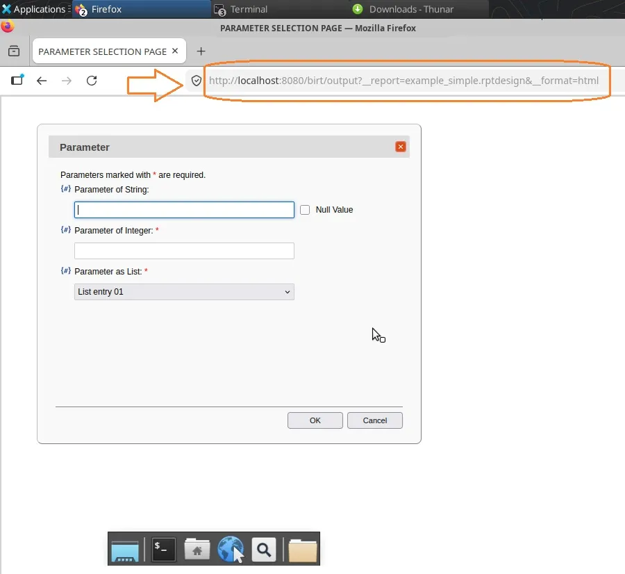 # Should be ~55K with no errorsnote: BIRT reports must be of the same version of the BIRT serverTo check that the BIRT installation was successful, open a web browser such as Firefox, type the following link: http://localhost:8080/birt/output?__report=example_simple.rptdesign&__format=htmland see that the sample report opens