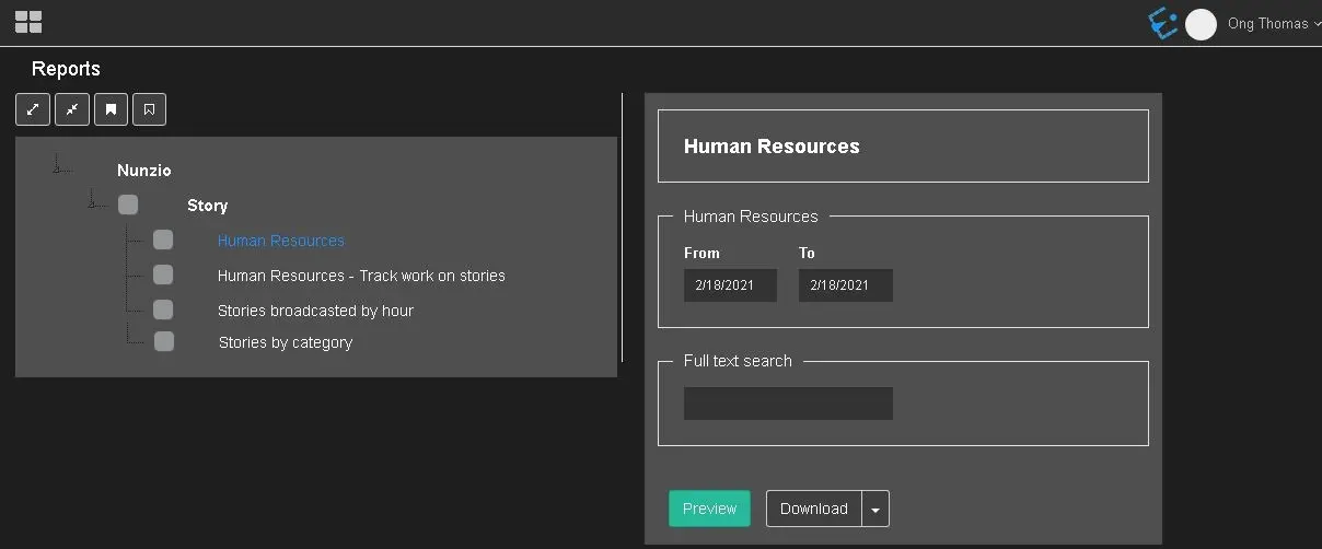 WARNING: In the reports, the date format is based on the date format settings in Web Server. For reports pertaining to Nunzio stories, the report extraction is based on story creation date despite if the story is not part of the rundown.