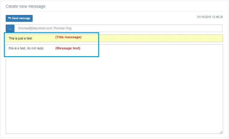 In the <Title message> field, enter a subject title to identify the subject matter of the intended messages.