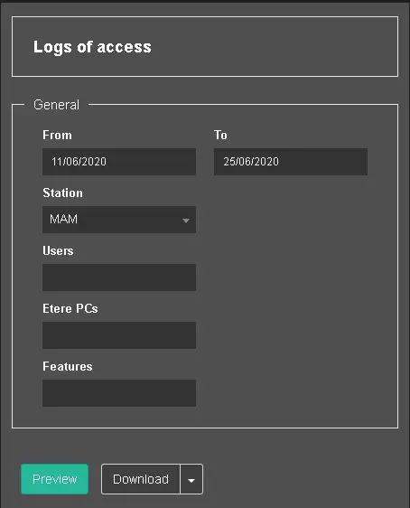 This report extracts user access information from a specific Etere station within a specific period.