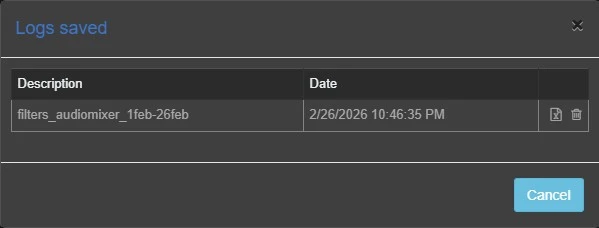 Generate excel files: Export the logs retrieved with the saved filters in a .csv file.