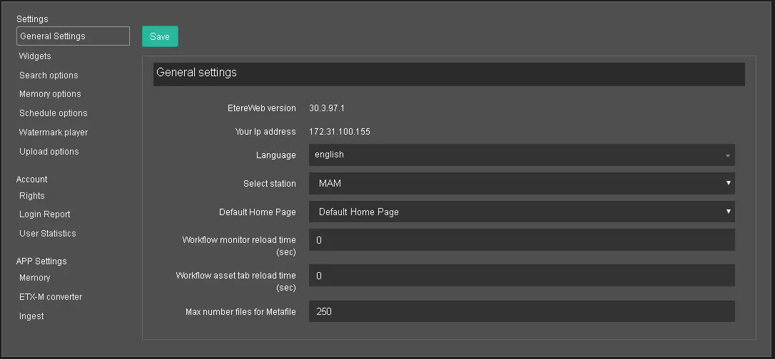 Etere Web interface page provides Administrator accessibility to manage user accounts and settings for accessing Etere Web machines.