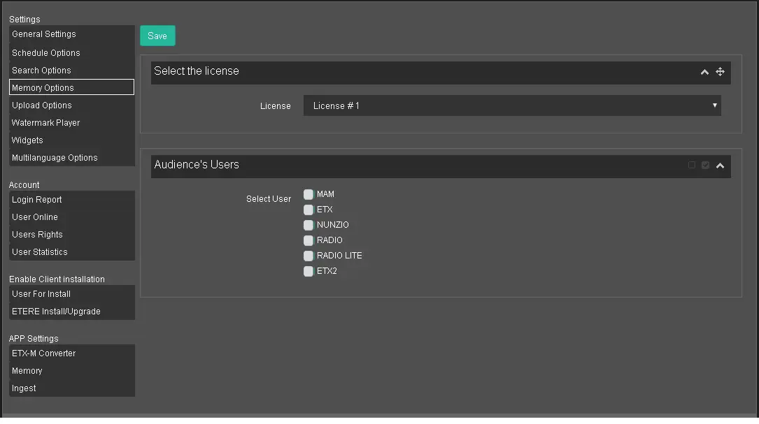 Before using the Memory option in EtereWeb, a license needs to be obtained from Etere.