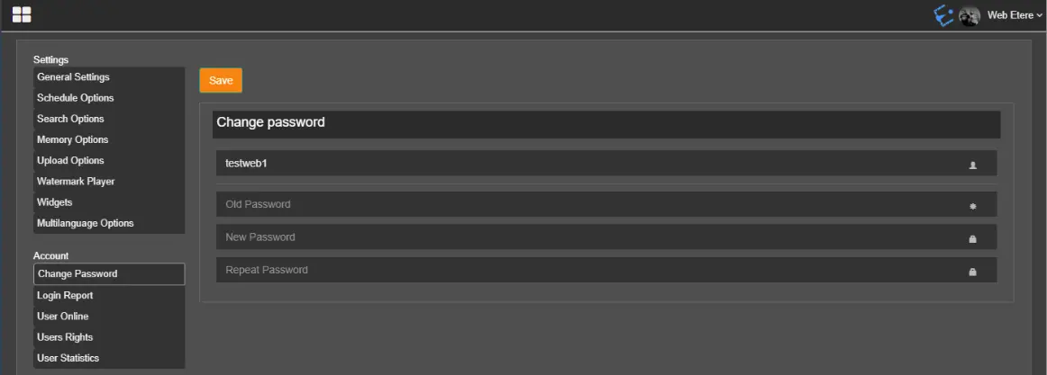 The Change Password allows the user to change the login password.
