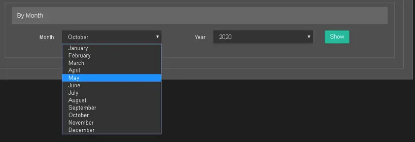Select the particular month of the year; you can also select a different year and click the <Show> button to display user statistics captured on the specific month.