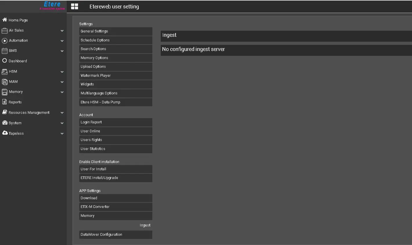 The classic Etere Ingest module can be installed and configured as a Software as a Service.