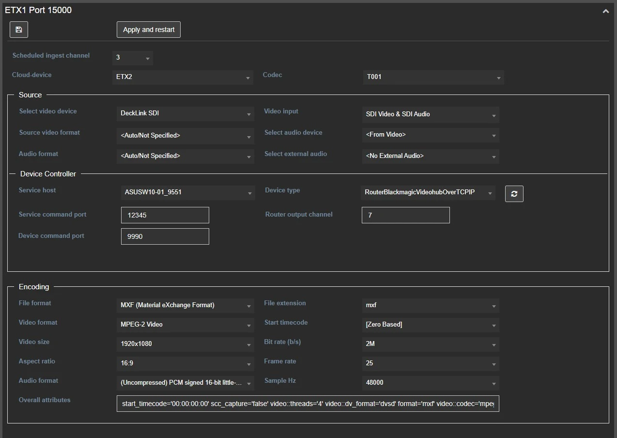 Apply and Restart: Save the configuration into the Etere database, apply the configuration to the XML file and eventually restart the related Service.