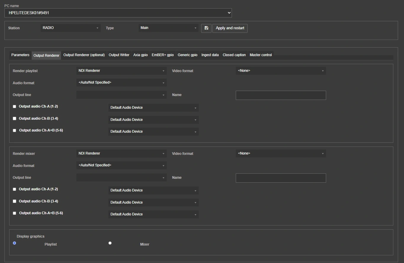 Display graphics: Choose on which of the 2 renders, the graphics should be loaded, whether on the Playlist or on the Mixer.
