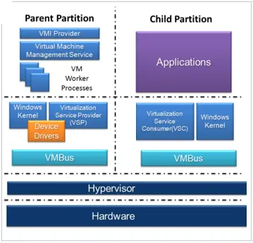 Hyper-V implements the isolation of virtual machines in terms of a partition. A section must have at least one parent partition in a hypervisor instance. The virtualisation software runs in the parent partition and directly accesses hardware devices. A parent partition can create child partitions using the hyper call API.