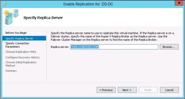 4. Enter the name of the Replica Server, or click the browse button to locate the Replica Server in the network.