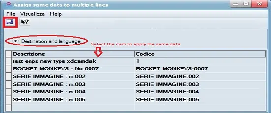 Description : By using this function, you can select item containing the language and destination data and apply the same data to multiple contract lines and overwrite the values at one go.