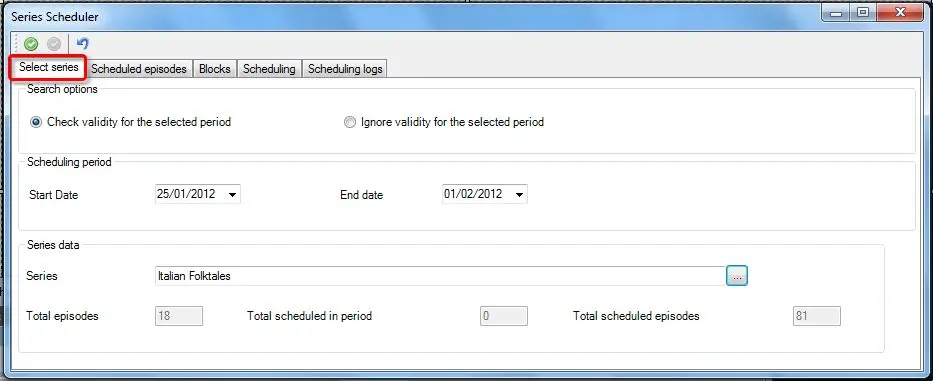 •Ignore validity: All seasons are available for scheduling. In this case, once scheduled, a warning message will be displayed for all episodes which are not valid for the scheduled dates.