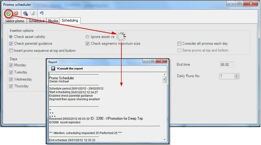 •View report: Show a detailed log of all the operations (e.g. insertions, warnings, errors) related to the selected scheduling operation.