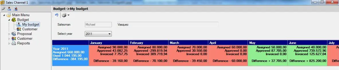 The Budget > My Budget section keep the salesman informed about their yearly/monthly objectives:
