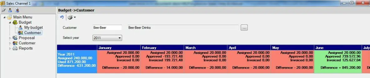 Similar to My Budget, the Budget > Customer section allows the salesman to consult the budget of a customer for a certain year/month: