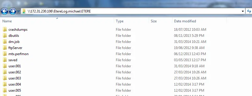 Log files can be very helpful to understand and solve software and devices problems, all logs are located in the Etere's Log directory (i.e. %localappdata%\Etere\Log\), which is shared on the network with the name "EtereLog.[Username].[Domain]".