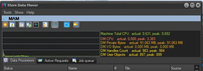 When you launch Etere Data Mover, the Tools menu contains a list of options for managing the performance.