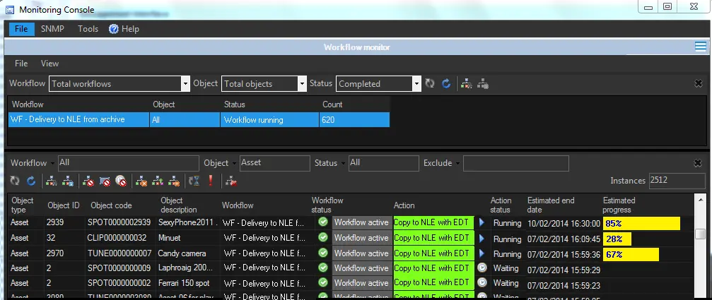 EDT transfers can be monitored from the Workflow to view the current status of the file transfers:Monitoring_console