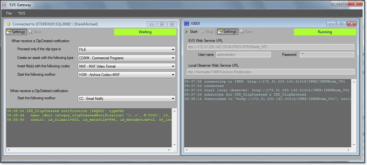 EVS Integration tools consist of a local web service which allows Etere systems to communicate with the IP Director's web service to receive notifications every time a clip is transferred or deleted on an EVS IP Director. The main characteristics of this solution are: