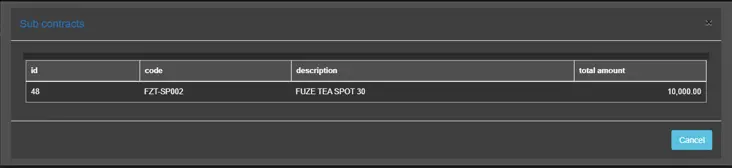 Next, click the View Sub-contracts button to display all sub-contracts linked to the selected Master Order. sub_contracts