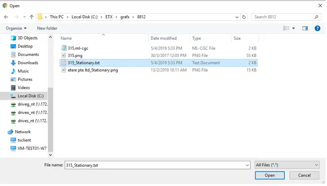 Select a file inserted and click <Open> to confirm your selection. The selected file would be added to the dialogue;