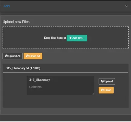 Next, click the <Upload> button to upload the file to EtereWeb, or remove the attached document by clicking on the <Clean> button. You can repeat the step to add more virtual documents to the list and click the <Upload All> to upload all files in one go;
