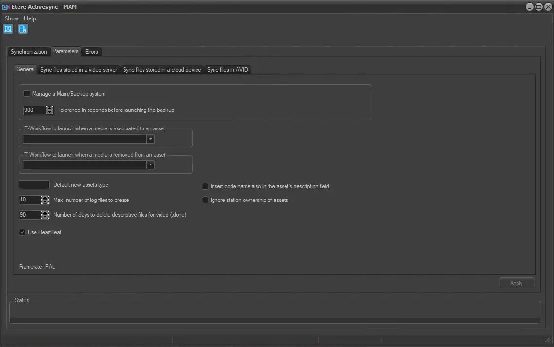 NB: Etere systems can have one Main and one Backup ActiveSync server at most. For further details on this feature, refer to Main/Backup mode.