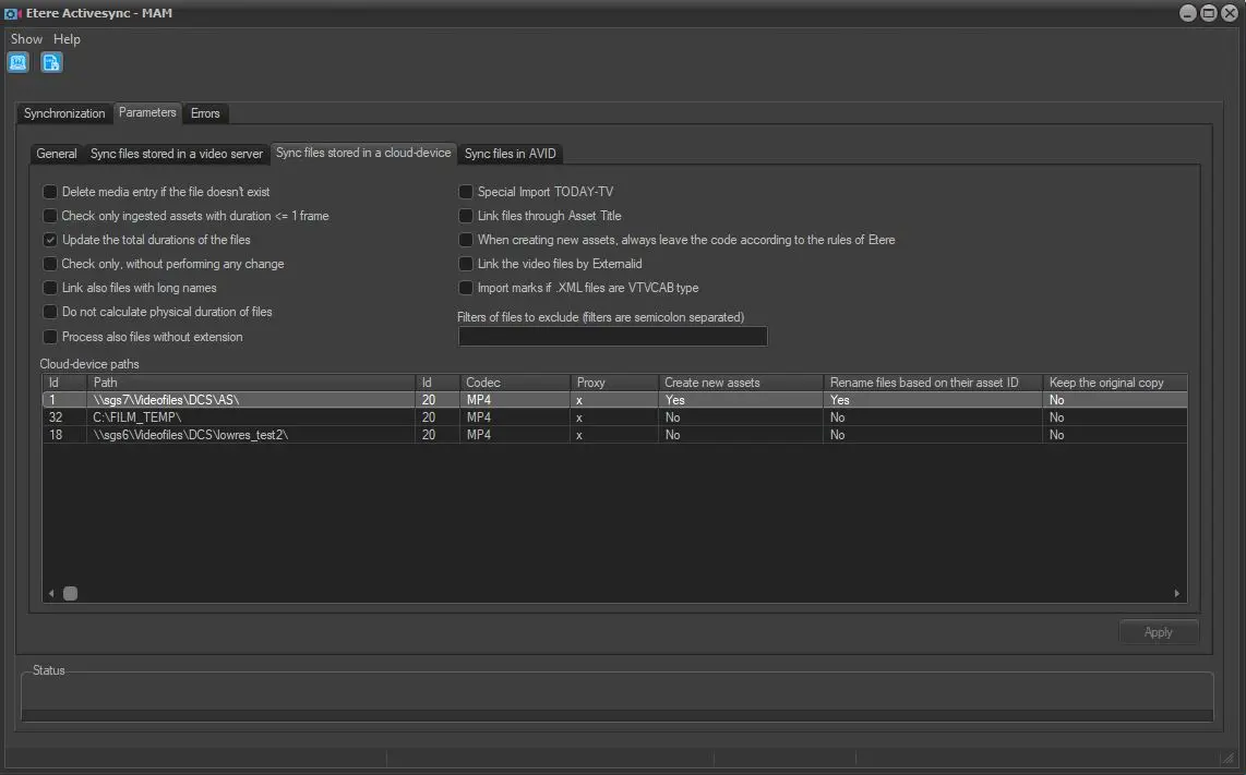 Do not calculate the physical duration of files: If enabled, Etere ActiveSync will not attempt to retrieve the duration of synchronized files.