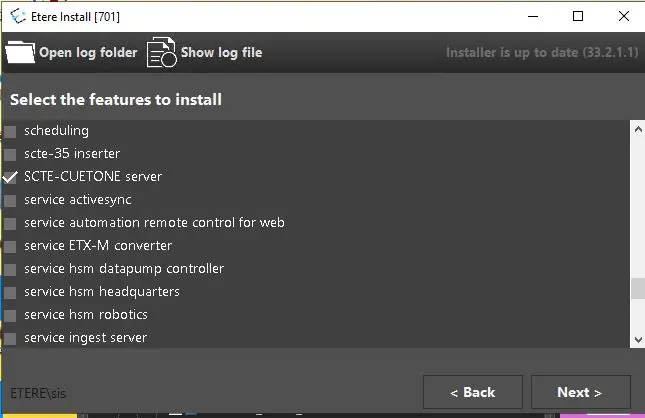 Choose SCTE CueTone Server from the installer and press Next to install the SCTE104 Inserter