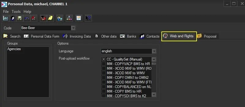 Post-upload workflow - Indicate the workflow(s) to be launched each time the current user uploads a file using Etere Web. If more than one workflow is selected, the web user will be able (depending on its rights) to choose the one to be launched after the upload.