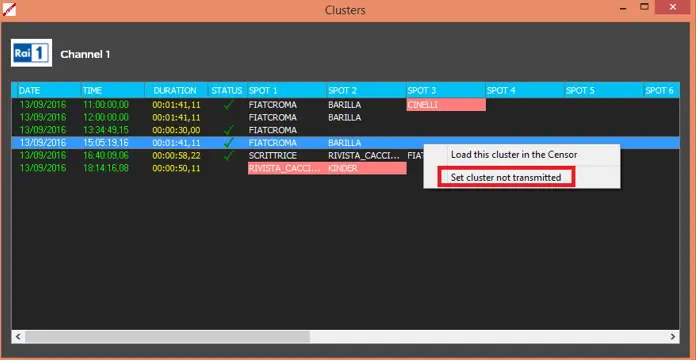 The spots of the cluster would be transmitted into the schedule and timeline. If the transmission fails, you can revert the transmission status for the areas of the cluster by right-clicking on the spots and selecting the <Set cluster not transmitted> to set the cluster status as not transmitted.