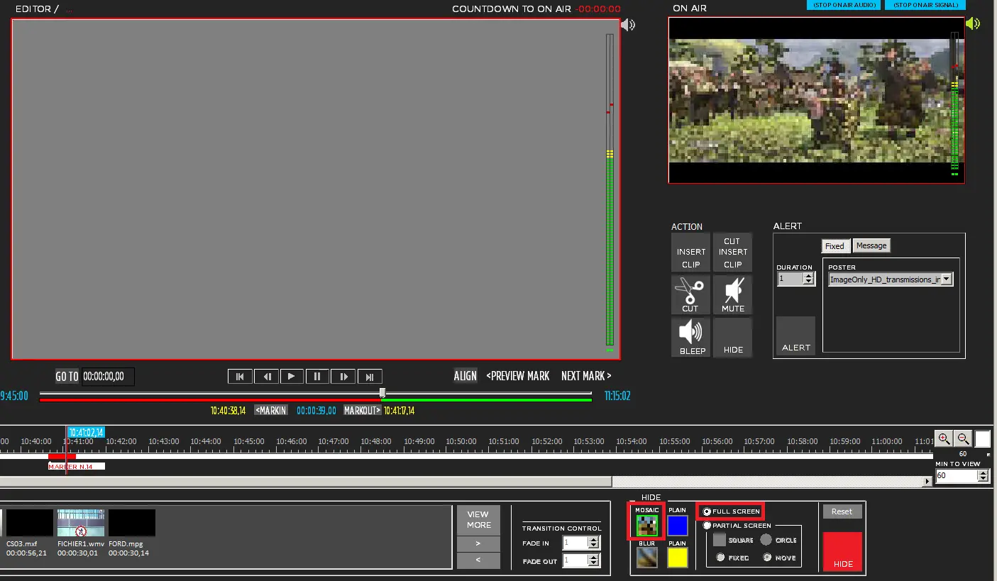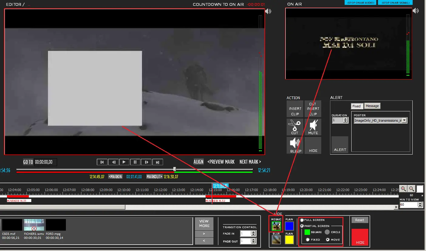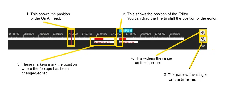 RED VERTICAL LINE: It shows the position of the On-Air feed.