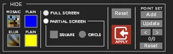 Launch the CensorMX application; the “Hide” effect menu is positioned at the bottom right corner of the user interface.