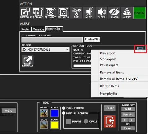 Moreover, the “Folder Clip” beside the clip name parameter would enable to view the clip exported. A user menu positioning in the render node frame allows the user to manage the export process.