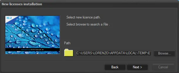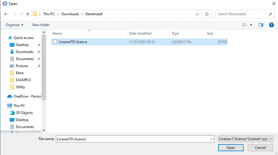 When selecting an existing license or New license, license files with “.licence” or “.sys” extensions are accepted, whereas “.licence” is preferable.