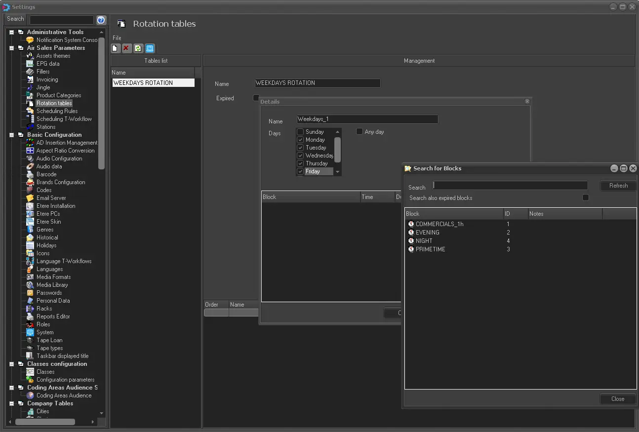 In the Etere Air Sales > Sales > Orders > Lines > Scheduling > Assets Assignment phase, you can select which rotation table should be used for scheduling.