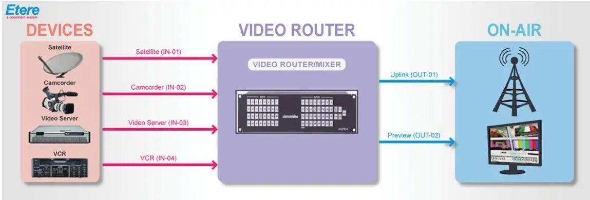 - Virtual router editing: Configure virtual routers to simultaneously switch multiple channels on multiple routers, by defining their inputs, outputs and crosspoint table.
