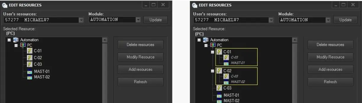 · Wrong linked resources can be removed from the virtual router by right-clicking on them and selecting "delete"
