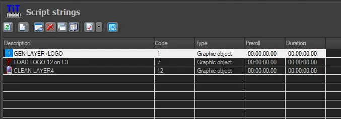 Etere's script strings are predefined commands to be sent to a device (e.g. logo generator, crawl, etc.) to perform a certain action. In this section, you can handle scripts (i.e. open, edit and also create).