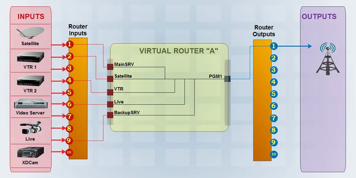 Once the resource(s) related to the virtual router (and its managed sub-routers) has been created, it can be configured under Etere's Configuration > Settings > Devices > Video Routers section as described in the following procedure:
