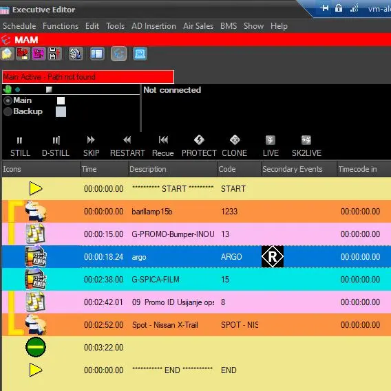In Executive Editor, the inserted logos would be displayed in the Secondary Events column. If the event consists of multiple segments, the logo would be applied to all segments.