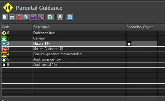 Now select another Parental Rating code and repeat the steps above to insert a different logo to the next rating.