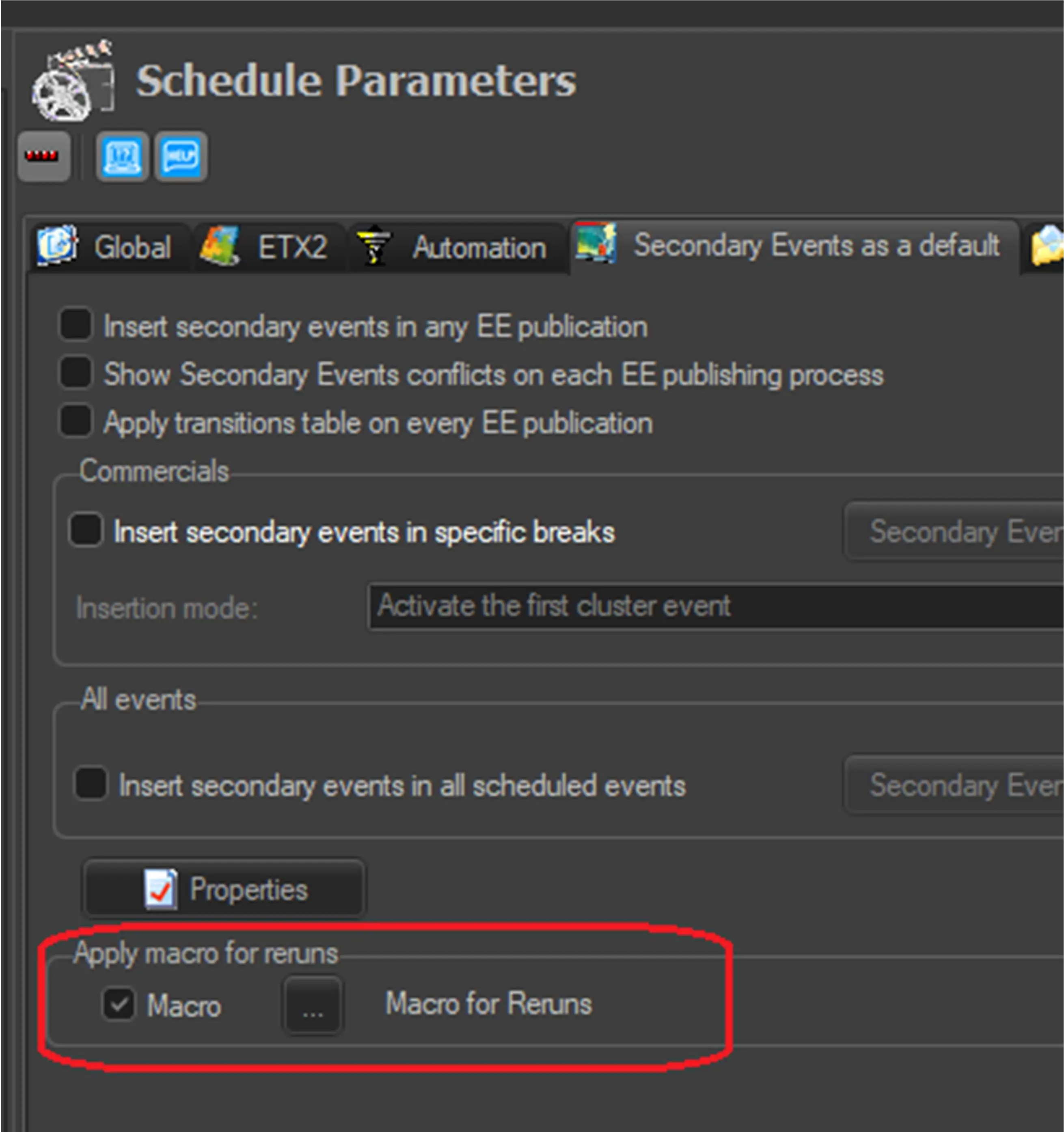 Activate this option to apply a specified macro to the events when running the "Apply secondary events as a default" function in EE. The macro will be applied only to the events which type has the property "Apply macro for reruns" enabled.