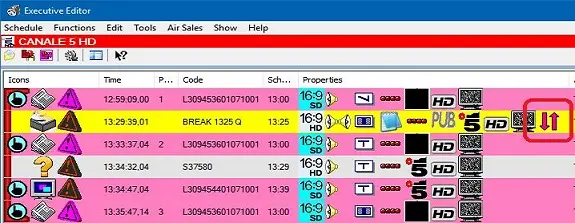 When a replaceability of break is present in the schedule, the replaceable break is indicated with an event icon in the Properties column of the schedule view in Executive Editor.