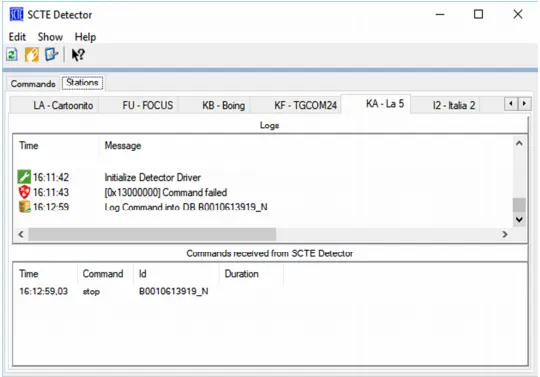 • Commands from SCTE Detector: It displays a list of commands received from the SCTE device driver.