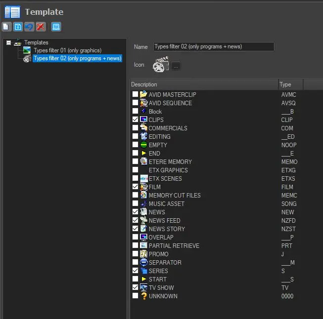 Under the Template section, it is possible to create profiles containing the asset types (both normal and system types) shown within the schedules.
