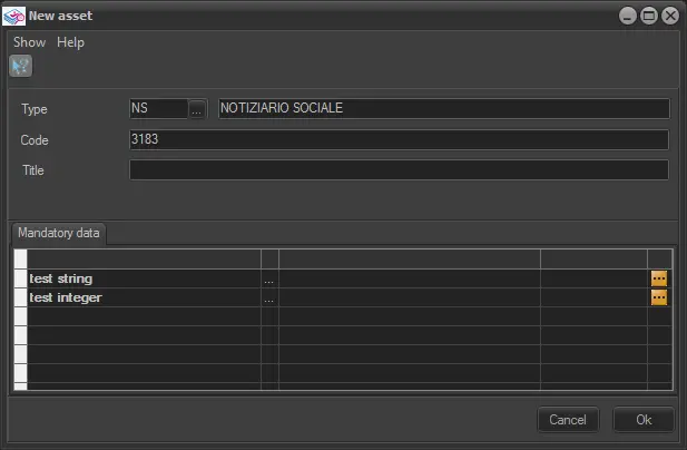 When creating a new asset, the user would be prompted to enter all the mandatory Flexi-metadata of the layout related to the asset type (e.g. COM).