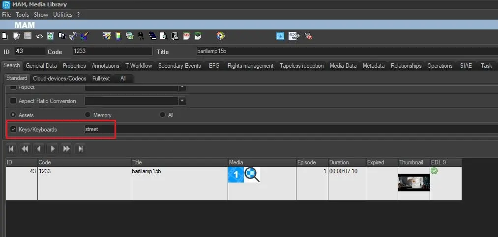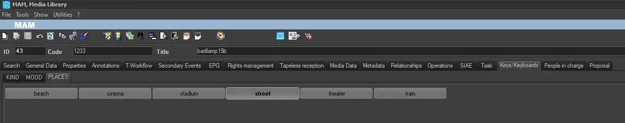 The Keys section allows configuring keywords that Etere MAM will use to catalogue media content. Once created, keys can be grouped into a common keyboard (see keyboards section) to enhance the metadata insertion. Keys