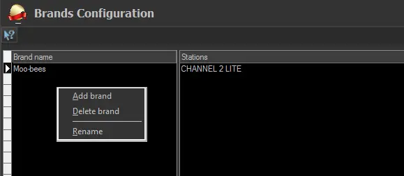 "Adding" and "removing" stations from brands can be done by selecting the brand and making right-click on the List of stations area: